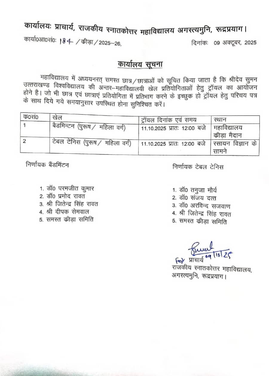We serve the community by inspiring & educating students. We emphasize on comprehensive educational programmes committed to high academic standards. Govt. P.G. College Agastyamuni gears up for its flight. I feel happy to interact with you on the onset of this new session. This new session would mark a new beginning for the institute. We are optimistic and I am sure with all the grooming that the dexterous hands of our dedicated faculty have provided to the students would bear sweet fruits.